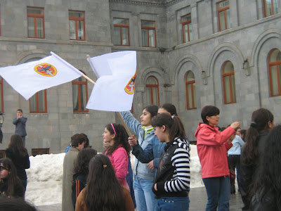 למחרת ירד שלג. עליתי להר שמעל העיר שצפה על העיר והר אררט שמעבר לגבול התורכי. למרות השלג באו אלפי אנשים וצעדו לעבר האנדרטה ואש הזיכרון והניחו אלפי פרחים לקול מוזיקה מיוחדת . אני צעדתי עם דגל ישראל. ביקשו מימני לדבר לטלוויזיה , אמרתי שאני באתי לזהות עם סבל עמם וגם לעמנו הייתה שואה .